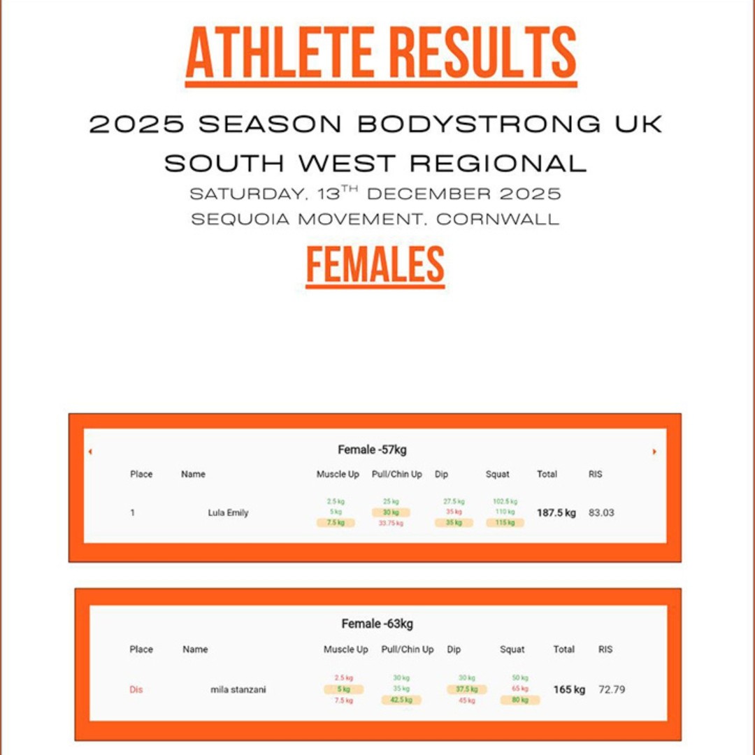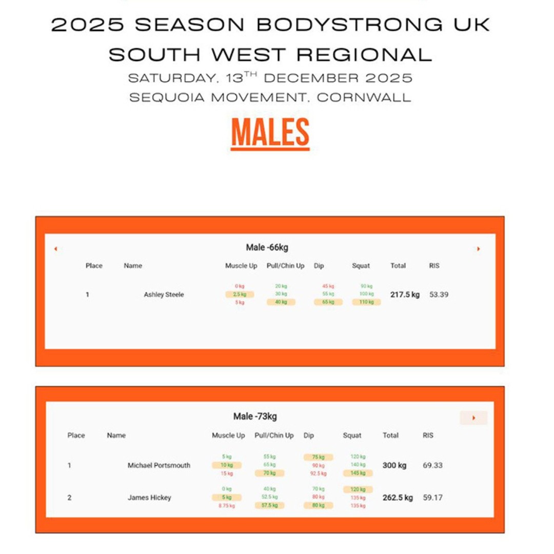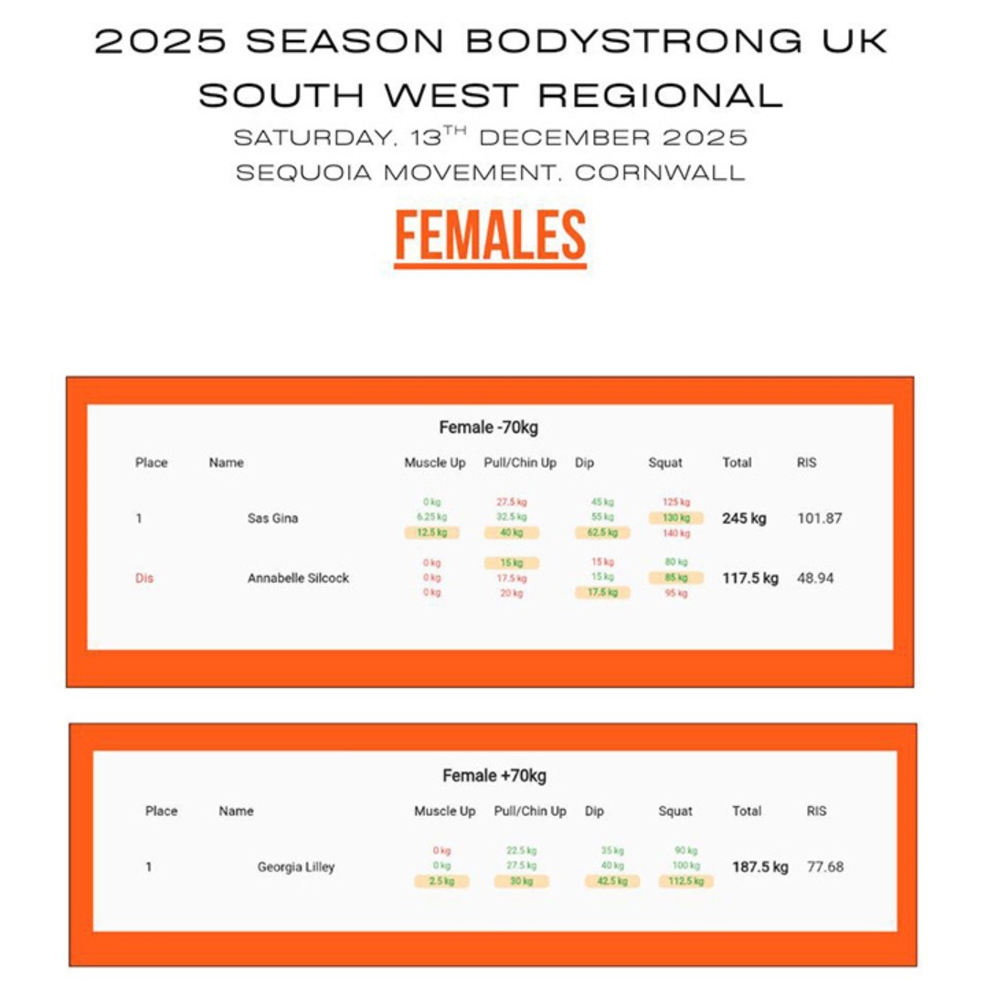On Saturday 13th December, Sequoia Movement in Penryn, Cornwall, hosted the South West Bodystrong Regionals giving athletes a chance to qualify for the 2026 Nationals.